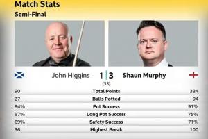 斯诺克世锦赛半决赛阶段1上半场:墨菲3-1希金斯